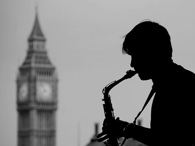 I realigned to see my saxophonist, but he’d guy removed his coat,
